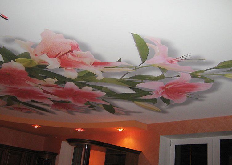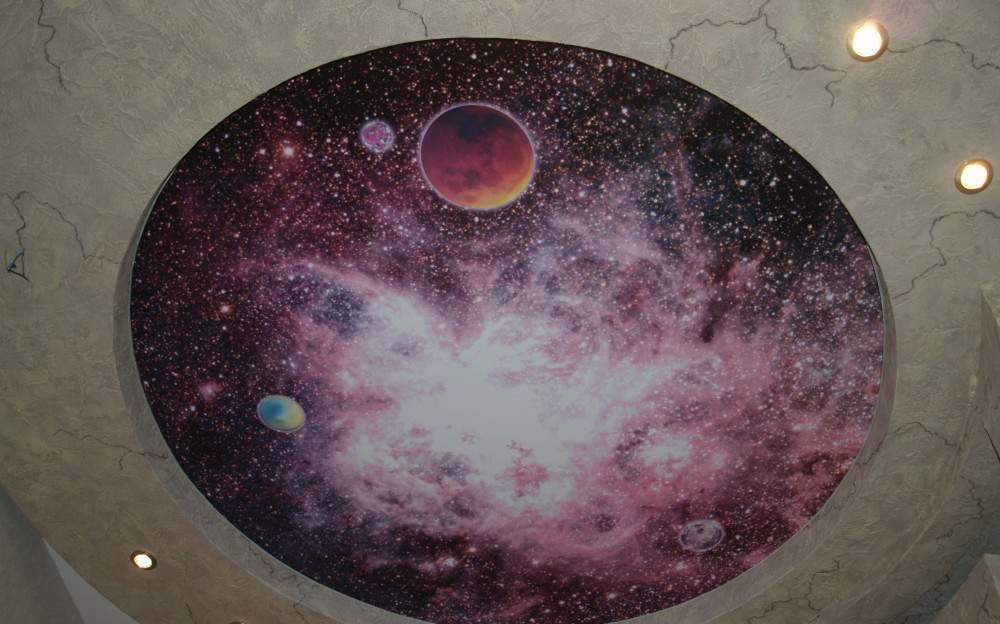 Фотопечать – креативный вариант, исполняющий самые безумные фантазии. На потолке может быть совершенно любая картинка, и даже фотография.