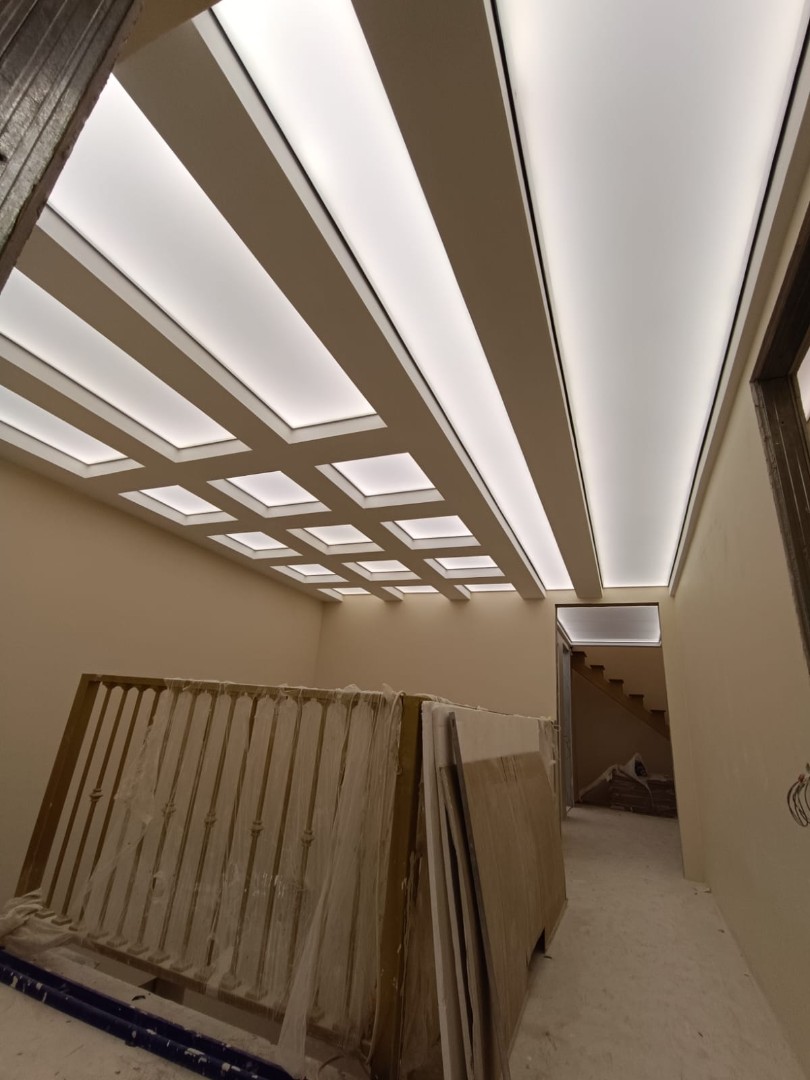 Каждый проект для нас уникален. Будь то лаконичное световое панно в минималистичном офисе, масштабный световой потолок в гостиной или имитация мансардного окна в цокольном этаже — мы берем на себя весь цикл работ: от точного замера и светотехнического расчета до финальной настройки контроллеров.